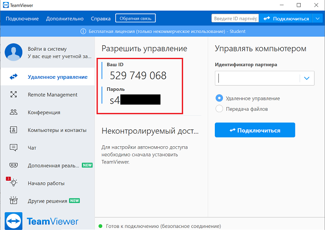 5.Сообщите нашему оператору ID и пароль для доступа к вашему компьютеру.