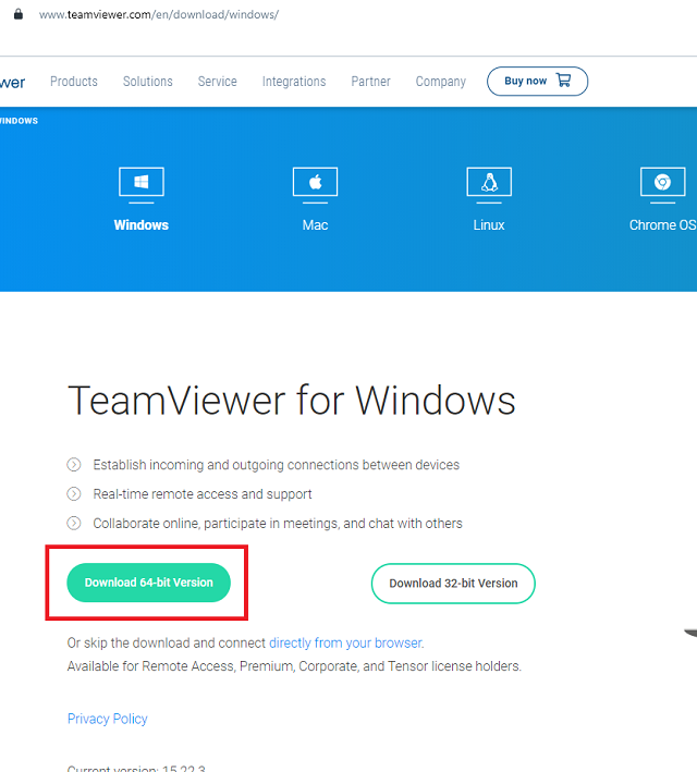 4.Перейдите на сайт https://www.teamviewer.com/en/download/windows/ и загрузите версию программы TeamViewer.